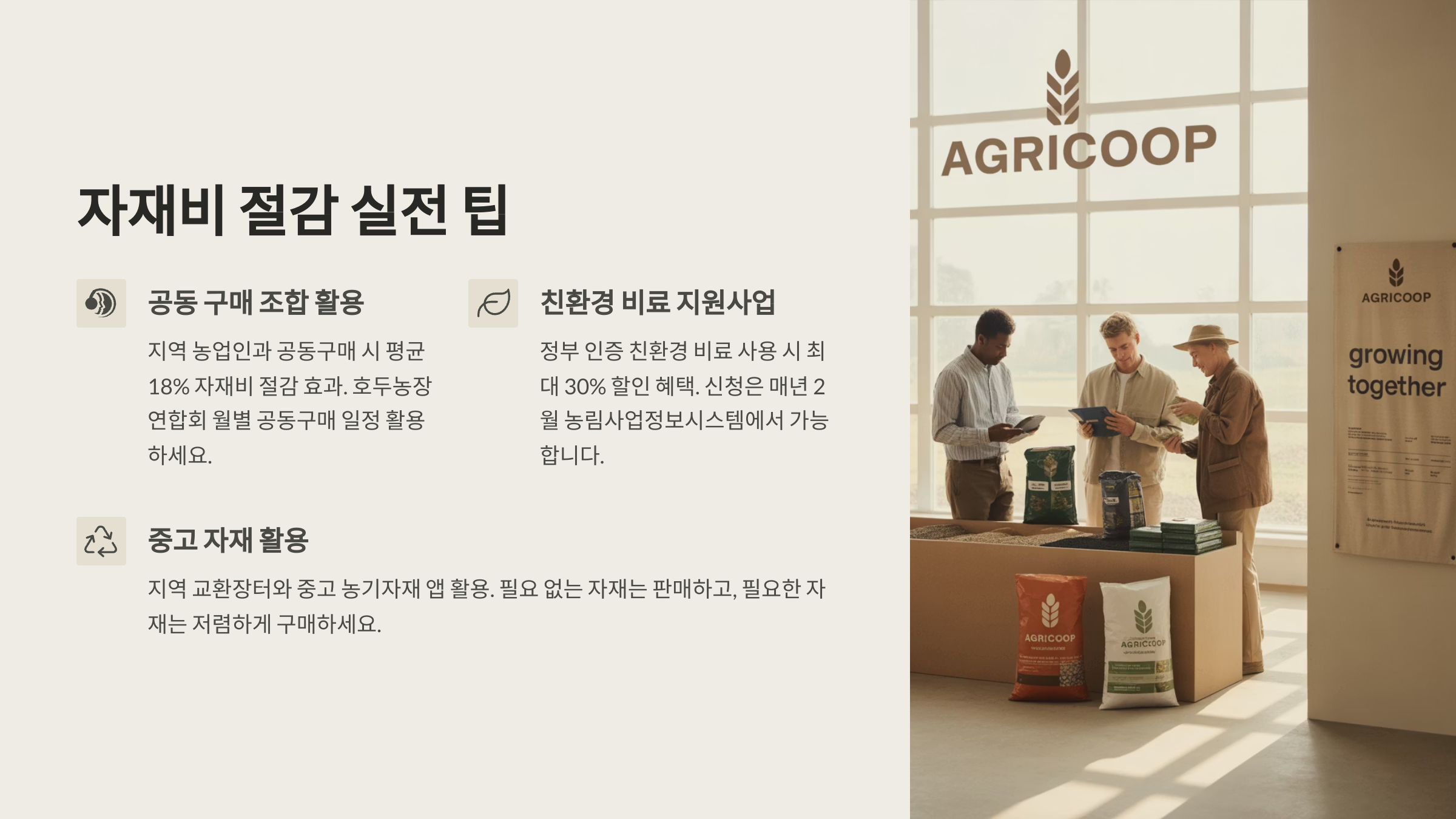 이처럼 작은 선택이 모이면 전체 운영비에서 적지 않은 절감을 만들어줘요. 특히 지속 가능한 농업을 실현하려면 '일회성 지출'보다는 '반복 가능한 절감 구조'를 만들 필요가 있어요. 😌